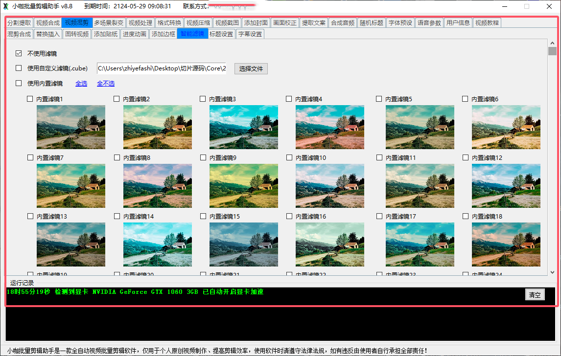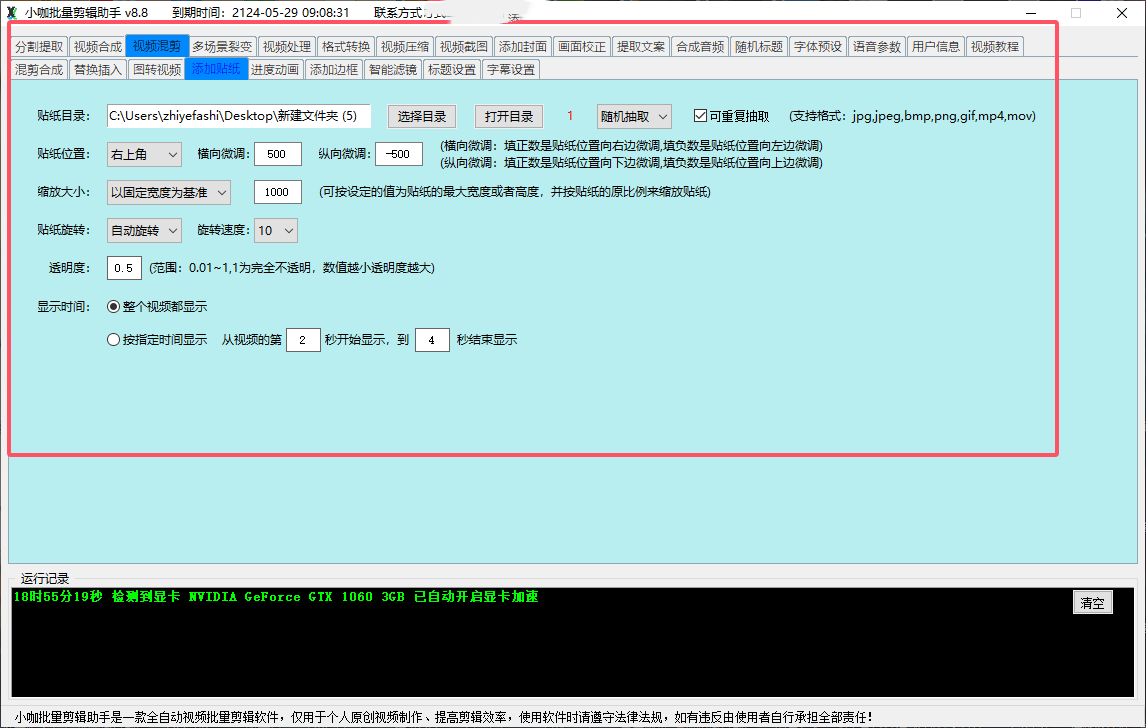 5. 视频处理:可以根据用户设置的参数和勾选的功能来自动化批量处理视频,给每个视频添加对应的处理效果