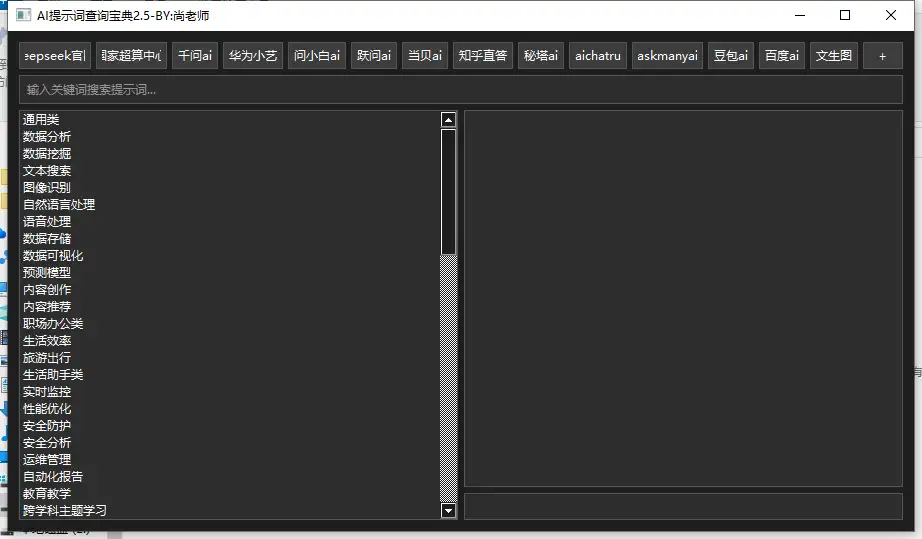 在人工智能飞速发展的今天,AI模型的应用已经渗透到生活的方方面面。无论是写作、数据分析,还是创意设计,AI都能为我们提供强大的支持。但如何高效地使用AI模型?如何通过精准的提示词获取高质量的答案?今天,我们为你带来AI提示词宝典v2.5——一款专为AI用户设计的提示词查询工具,帮助你快速掌握AI模型的最佳使用方法。