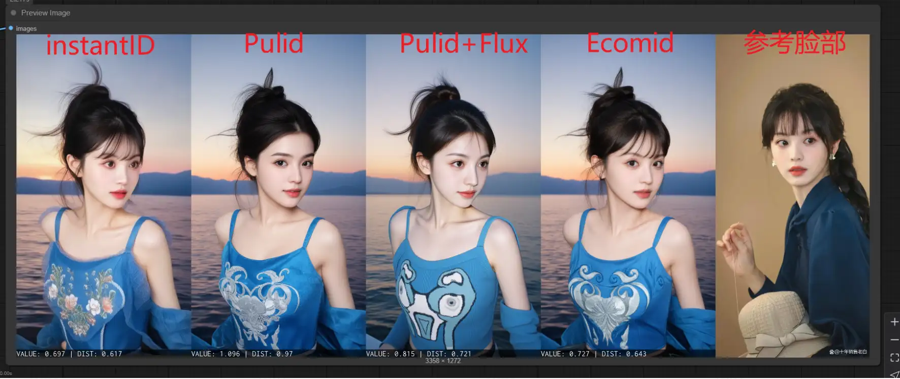 在不断探索的过程中,我发现了ComfyUI这个强大的平台,以及它的换脸插件EcomID。ComfyUI的生态不断发展,换脸插件也越来越丰富,比如InstantID、EcomID、Pulid、Pulid+Flux、Reactor等。经过对比,不同工具在换脸效果上各有优劣: