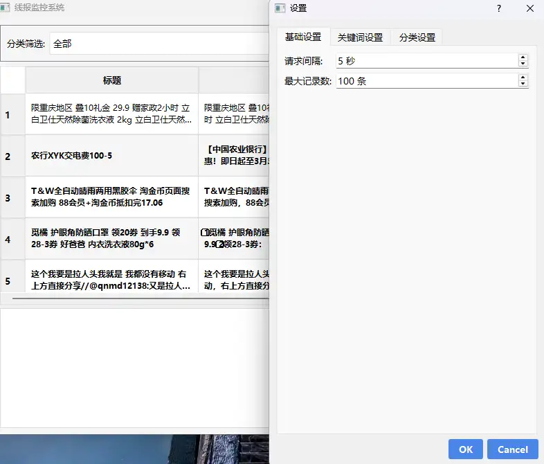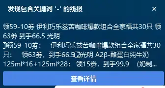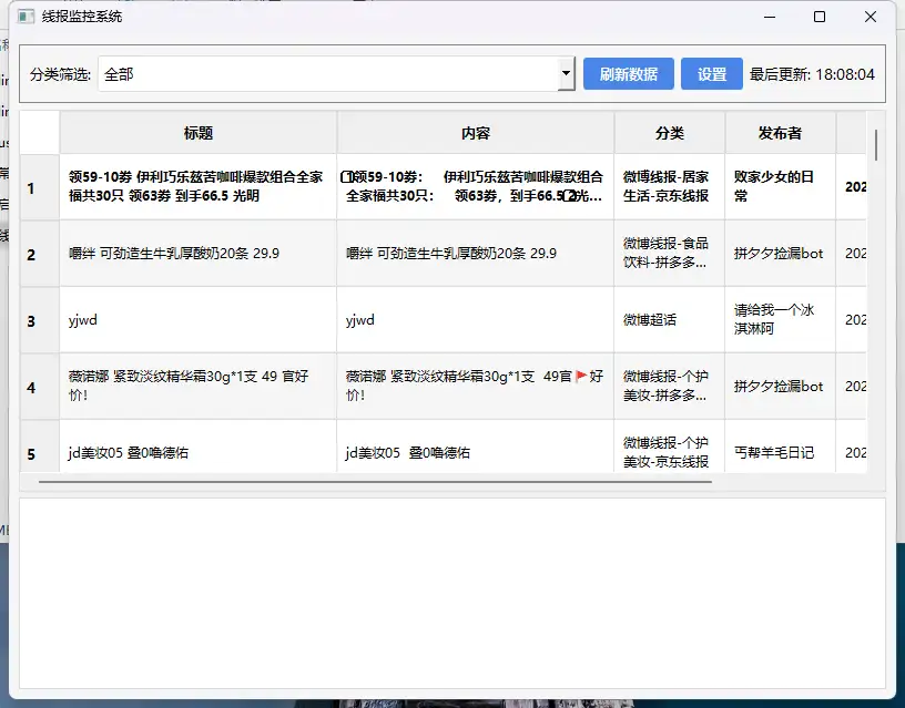 微博线报是目前最受欢迎的线报来源之一。从食品饮料到居家生活,从个护美妆到母婴儿童,微博上每天都有大量的线报信息。通过线报监控软件,你可以轻松筛选出自己感兴趣的线报内容,例如京东线报、淘宝线报、拼多多线报等,还可以设置特定的关键词提醒,确保不错过任何一个薅羊毛的机会。