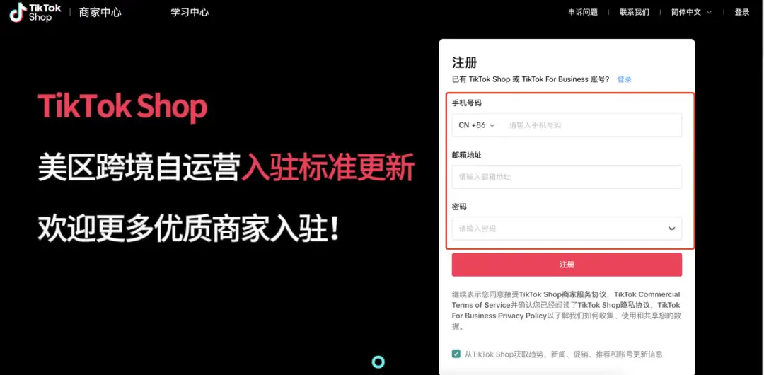 注册链接:通过TikTok官方提供的特定链接进入注册页面。