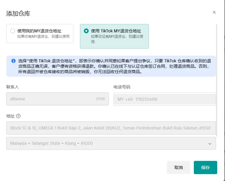 官方仓库:如果没有自己的仓库,可以选择使用TikTok官方提供的仓库。这可以避免客户选择“我没有当地仓库”而导致的仅退款秒退问题。