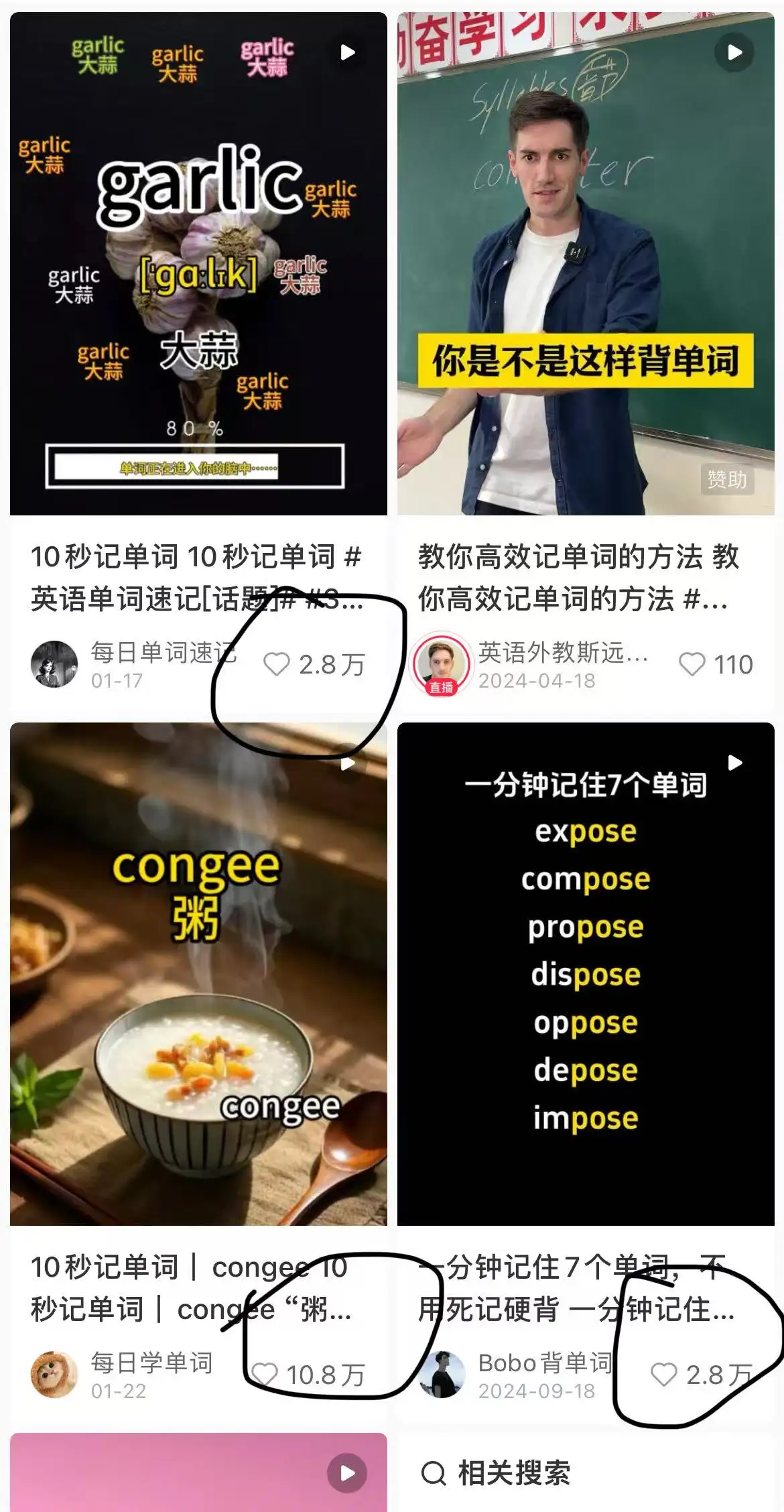 小红书、抖音和视频号等平台上,英语学习类视频正成为流量的新宠。尤其是那些简单易懂、节奏明快的英语单词视频,更是频繁出现在热门推荐中。这些视频不仅吸引了大量用户的关注,还获得了海量的点赞和分享,成为当之无愧的爆款赛道。