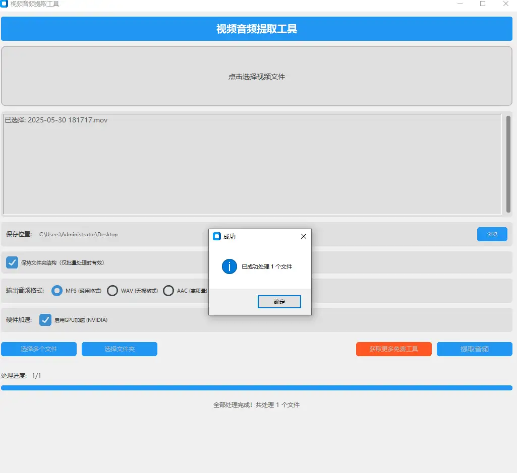 专注本地化处理的视频转音频工具震撼上线!这款基于 FFmpeg 技术开发的 Windows 专用软件,真正实现全程无需联网的 MP4 转 MP3 操作,支持 AVI、MOV 等主流格式快速分离音频,完全免费无任何功能限制。