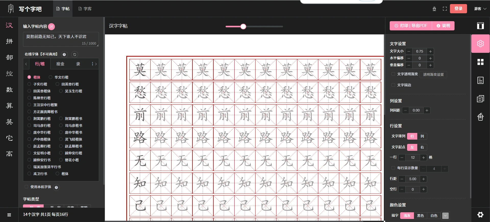 • 一个超强的字帖生成器