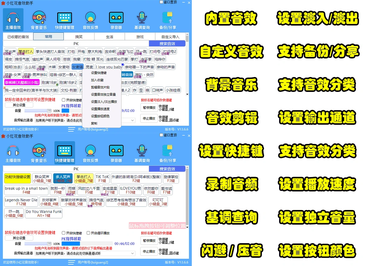– 快捷键功能,音效播放/音量调节/音频剪辑全搞定