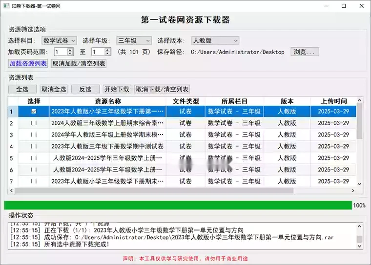 • 如人教、苏教、北师大等,工具可批量下载,下载后的试卷全是压缩包