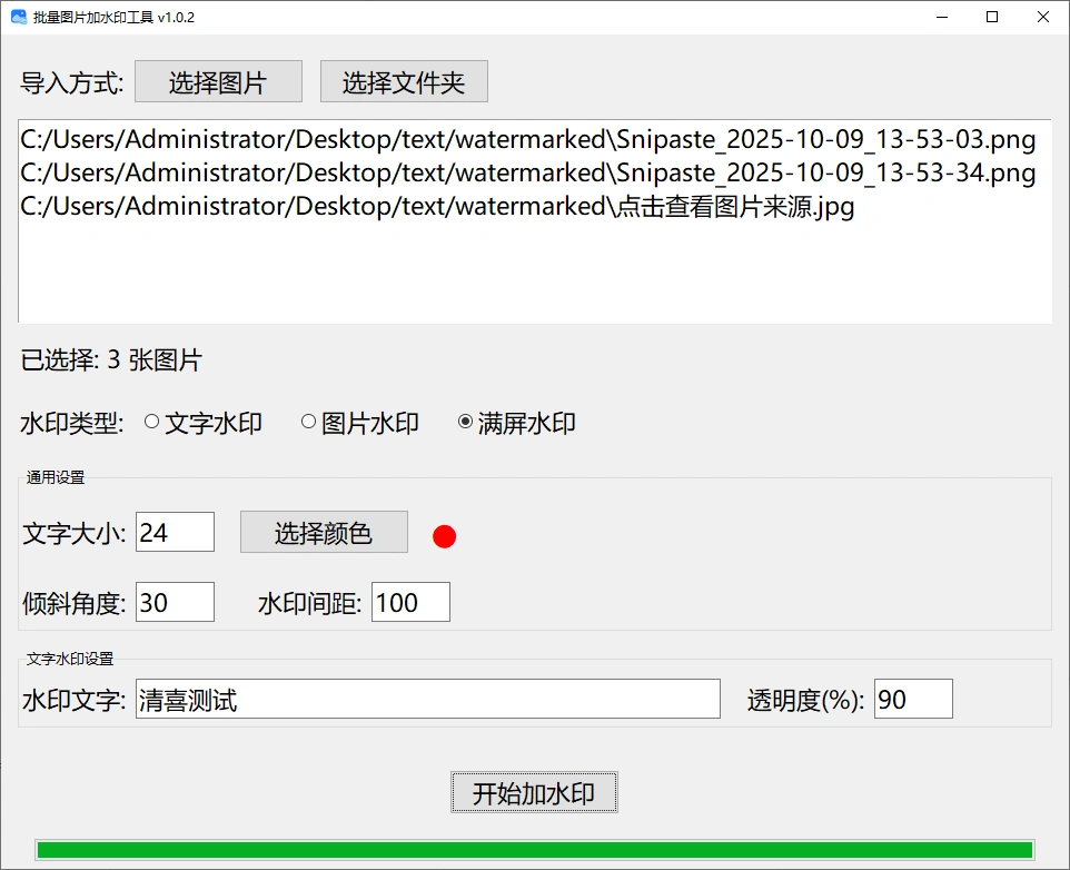 - 这是一款非常强大且使用简单的图片批量添加水印工具,支持导入单个图片和选择整个文件夹的所有图片导入