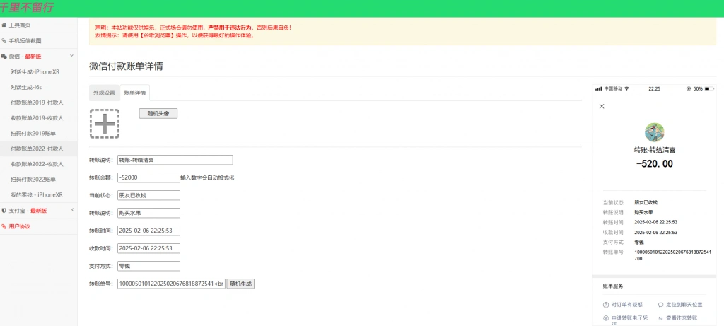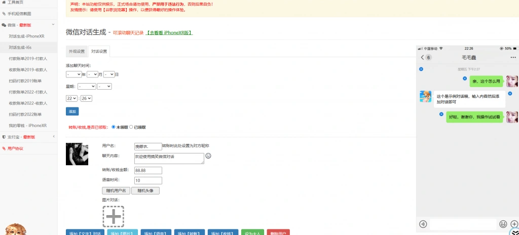 - 微信和支付宝截图生成工具,支持聊天记录、收付款账单、扫码付款、零钱、余额、商品付款等